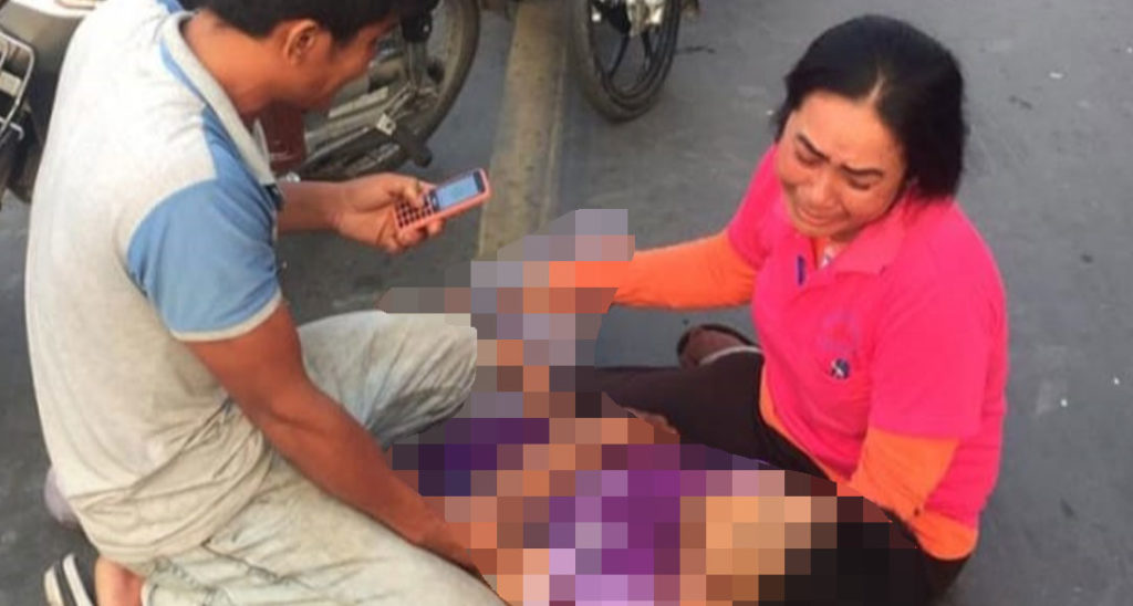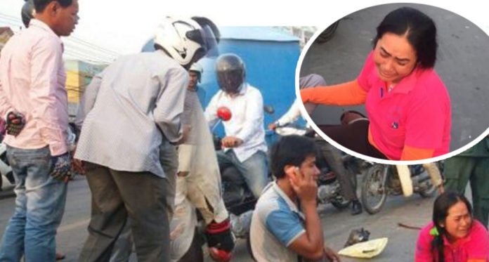 ភ្នំពេញ ៖ កាលពីវេលាម៉ោង៦ និង២៥នាទីព្រឹក ថ្ងៃទី២៧ ខែមីនា ឆ្នាំ២០១៩ បុរសម្នាក់ កំពុងជិះកង់ឆ្លងផ្លូវ ក៏ស្រាប់តែត្រូវម៉ូតូធុនធំ១គ្រឿង បើកក្នុងល្បឿនយ៉ាងលឿន ជ្រុលទៅបុកចំពាក់កណ្តាលកង់យ៉ាងពេញទំហឹង បណ្តាលឱ្យប៉ើងបោកទៅនឹងថ្នល់ស្លាប់យ៉ាងអាណោចអាធ័ម ជាហេតុធ្វើឱ្យស្ត្រីជាប្រពន្ធមកដល់ប្រទះឃើញប្តីដេកស្លាប់ស្តូកស្តឹងលើទ្រូងផ្លូវ ក៏ស្រែកទ្រហោយំបោកខ្លួន ឱបសពប្តីដោយក្តីសង្វេគ។