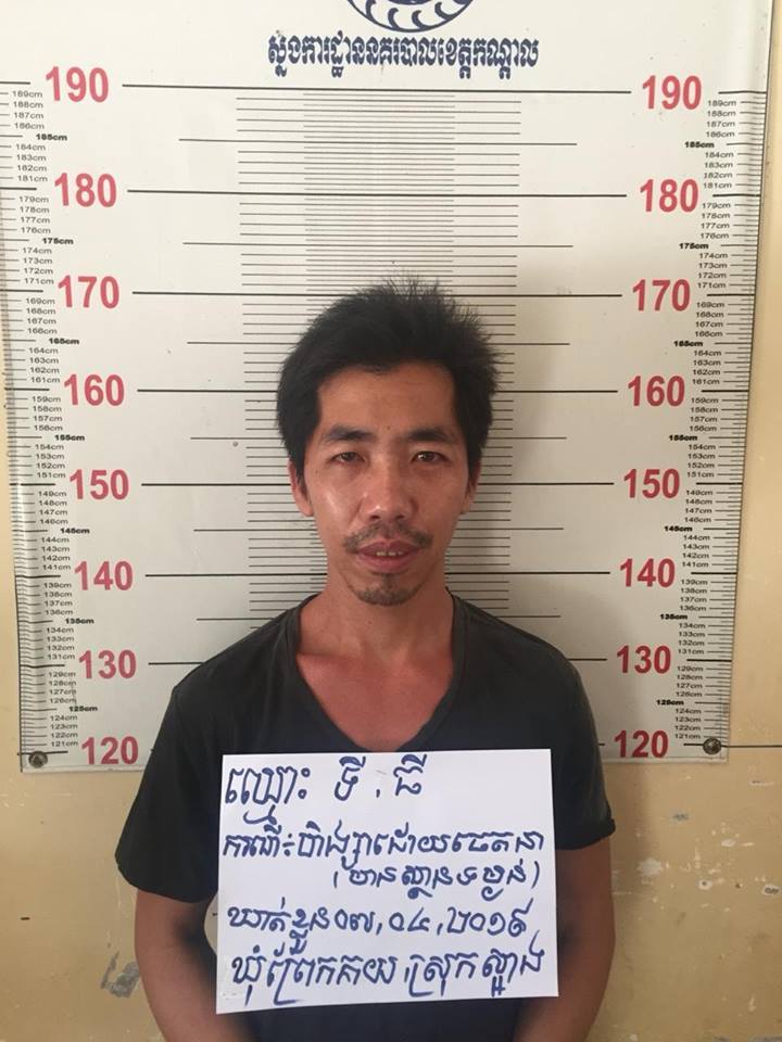 ខេត្តកណ្តាល ៖ បុរសម្នាក់ទើបនឹងចេញពីពន្ធនាគារ មិនបានប៉ុន្មាន ក៏រករឿងឈ្លោះប្រកែកជាមួយនឹងប្អូនថ្លៃរបស់ខ្លួន រហូតដល់ទាញ កាំបិតប៉័ងតោសម្រាប់កាប់សាច់ជ្រូក ដេញកាប់ប្អូនថ្លៃ១កាំបិត បណ្តាលឱ្យរងរបួសធ្ងន់ ទីបំផុត ក៏ត្រូវសមត្ថកិច្ចចាប់វ៉ៃខ្នោះអូសកយកទៅ ចាត់ការតាមច្បាប់។