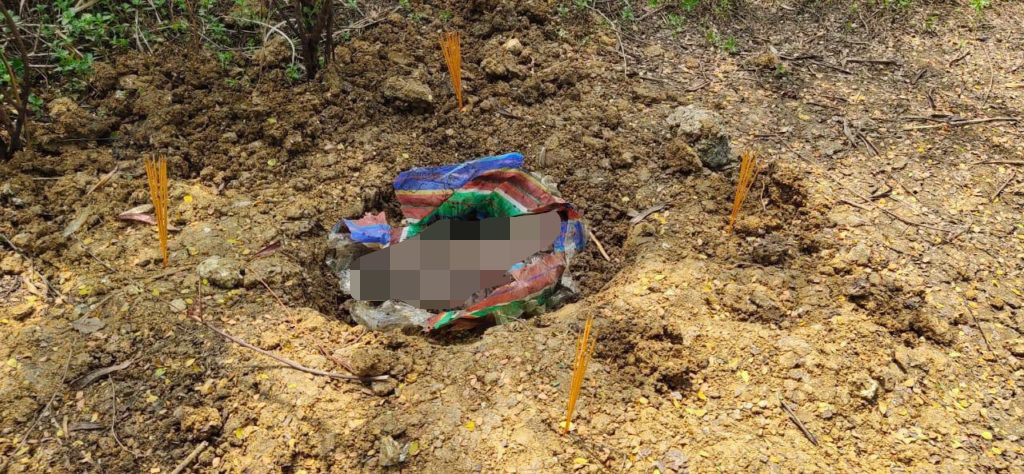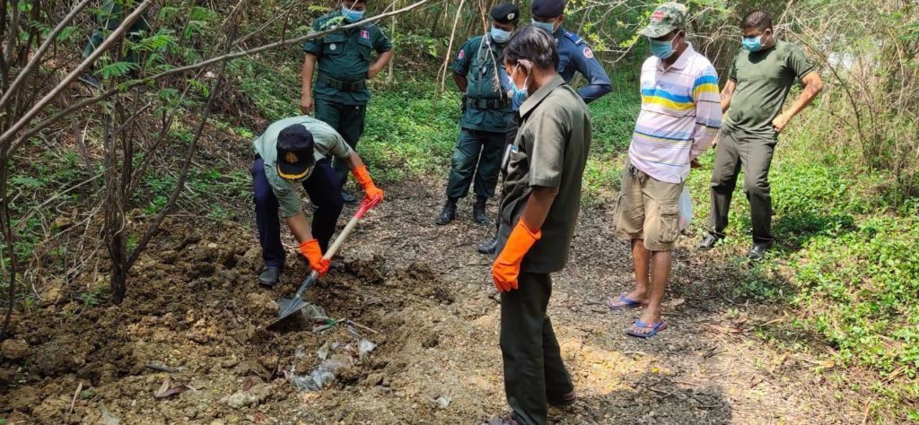 ដោយឡែកតាមរបាយការណ៍របស់សមត្ថកិច្ច បានឱ្យដឹងថា នៅថ្ងៃទី១៤ ខែមេសា នៅវេលាម៉ោង៨និង៣០នាទីព្រឹក សមត្ថកិច្ចបានទទួលព័ត៌មានពីប្រជាពលរដ្ឋមកថា មានស្នាមគាស់កកាយដី និងស្នាមកប់រណ្តៅថ្មីៗ១កន្លែង ត្រង់ចំណុចខាងកើតស្រះទឹក ក្រោយសណ្ឋាគារលី (នាគមាស)។ ក្រោយមក កម្លាំងសមត្ថកិច្ចបានចុះដល់កន្លែងកើតហេតុខាងលើ ព្រមទាំងអាជ្ញាធរភូមិអូរជ្រៅគាស់កាយមើល ក៏ប្រទះឃើញសាកសពមនុស្សច្រកថង់ស រុំការ៉ុងឆ្នូតពណ៌ក្រហមខៀវ និងមានក្លិនស្អុយ រលួយ មិនស្គាល់អត្តសញ្ញាណ (សាកសពរលួយស្អុយ)។