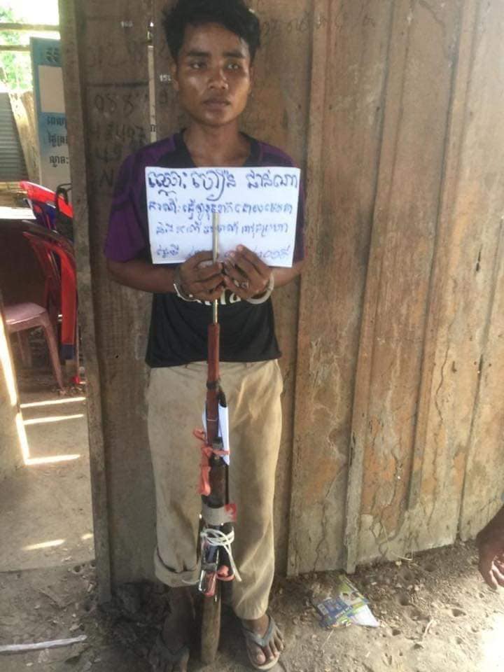 ខេត្តកំពង់ឆ្នាំង ៖ យុវជនម្នាក់នៅសុខៗ ក៏កាន់កាំភ្លើងច្នៃ១ដើម ដើរអុកឡុករករឿងគេឯងពេញភូមិ និងបានចូលទៅវាយបំផ្លាញទូទឹកកកនៅក្នុងតូបលក់ចាប់ហួយរបស់អ្នកភូមិ រហូតដល់ម្ចាស់គេទ្រាំមិនបាន ក៏រាយការណ៍ប្តឹងសមត្ថកិច្ចចាប់ខ្លួននាំយកទៅចាត់ការតាមច្បាប់។