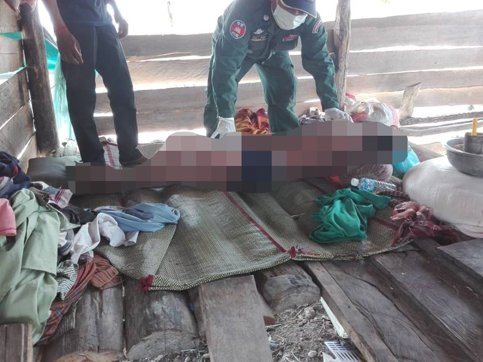 តាមការបំភ្លឺរបស់សាក្សីឈ្មោះជឺ សាវ័ន ភេទប្រុស អាយុ២៩ឆ្នាំ នៅភូមិបុសថ្លាន់ ឃុំ ស្វាយទាប ស្រុកចំការលើ ខេត្តកំពង់ចាម បច្ចុប្បន្ននៅធ្វើចម្ការចំណុចកើតហេតុខាងលើ បានឱ្យដឹងថា នៅវេលាម៉ោងប្រហែល១០យប់ ខ្លួនដើរ ទៅដល់ជិតរោង ក៏ស្រែកហៅជនរងគ្រោះ តែមិនឮសូរម្ចាស់រោងឆ្លើយតបវិញសាះ ភ្លាមនាះ ខ្លួនមានការសង្ស័យ ក៏បានទៅបបួលក្មួយរបស់ជនរងគ្រោះ ព្រមទាំងអ្នកជិតខាង៣-៤នាក់ទៀត នាំគ្នាទៅមើល ពេលទៅដល់ បានច្របាច់ភ្លើងអំពូលពិលមើលលើរោង ក៏បានប្រទះឃើញ ជនរងគ្រោះកំពុងដេកនៅលើរោង ពេលនោះ ក្មួយរបស់ជនរងគ្រោះ បានអង្រួនឱ្យភ្ញាក់ តែមិនភ្ញាក់ ក៏នាំគ្នាពិនិត្យមើល ជនរងគ្រោះ ទើបដឹងថា ជនរងគ្រោះបានស្លាប់ បាត់ទៅហើយ រួចក៏រាយការណ៍ប្រាប់សមត្ថកិច្ច ឱ្យមកពិនិត្យសាកសព។