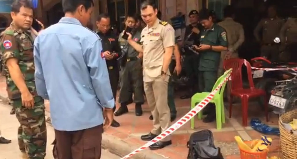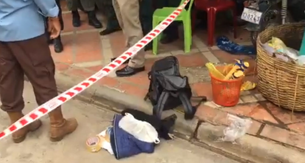 តាមប្រភពពីប្រជាពលរដ្ឋនៅក្បែរកន្លែងកើតហេតុ បានឲ្យដឹងថា មុនពេលកើតហេតុ កាលពីវេលាម៉ោង១០ព្រឹក ថ្ងៃទី០១ ខែឧសភា ឆ្នាំ២០១៩ គែបានឃើញបុរសម្នាក់ជាជនជាតិចិន បានស្ពាយកាបូ១ ពណ៌ខ្មៅ ដើររេរាចុះឡើង ហើយបានប្លុងចោលកាបូបស្ពាយចោលមុខប៉ុស្តិ៍នគរបាលចោមចៅទី១ ស្ថិតក្នុងភូមិត្រពាំងថ្លឹង សង្កាត់ចោមចៅទី១ ខណ្ឌពោធិ៍សែនជ័យ។ ដោយមានការងឿងឆ្ងល់ សមត្ថកិច្ចក៏បានឃាត់ខ្លួនបុរសជនជាតិរូបនោះភ្លាមៗផងដែរ។