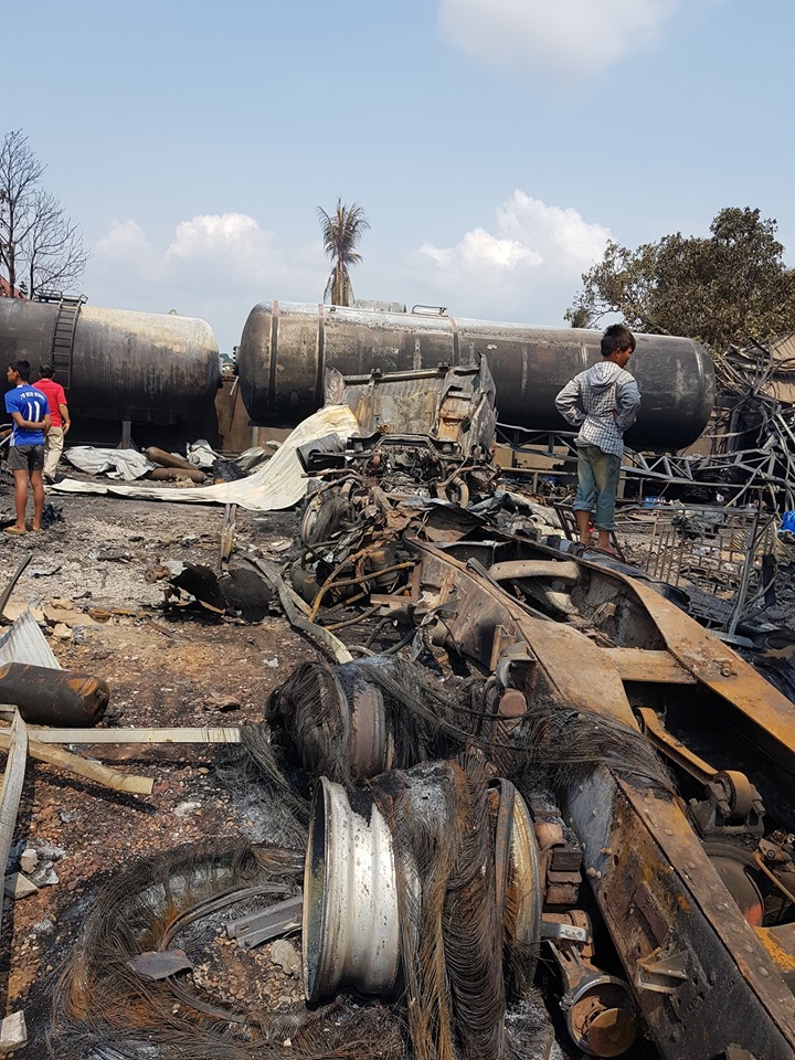 តាមប្រភពពីប្រជាពលរដ្ឋនៅក្បែរកន្លែងកើតហេតុ បានឱ្យដឹងថា ដំបូងឡើយ ពួកឮសូសំឡេងផ្ទុះខ្លាំងៗចំនួន២ដង ហើយបានឃើញផ្សែងភ្លើងចេញពីស្ថានីយប្រេងនោះតែម្តង ហើយក្នុងនោះ ឃើញមានកម្មករធ្វើការក្នុងស្ថានីយប្រេងខាងលើចំនួន២នាក់ បានរត់ចេញពីកន្លែងកើតហេតុ ទាំងស្ថានភាពរបួសរលាកពេញខ្លួន និងត្រូវបានសមត្ថកិច្ចជួយដឹកបញ្ជូនទៅសង្គ្រោះនៅមន្ទីរពេទ្យភ្លាមៗផងដែរ។ បន្ទាប់ពីឆេះធុងហ្គាសមួយដ៏ធំកក្រើកដល់ផ្ទះអ្នកជិតខាង ក៏បានធ្វើឱ្យការឆាបឆេះកាន់តែខ្លាំង និងមានដែកអំបែងហោះហើរពេញមេឃ ធ្លាក់ធ្វើឱ្យមានប្រជាពលរដ្ឋមួយចំនួនរងរបួសផងដែរ។