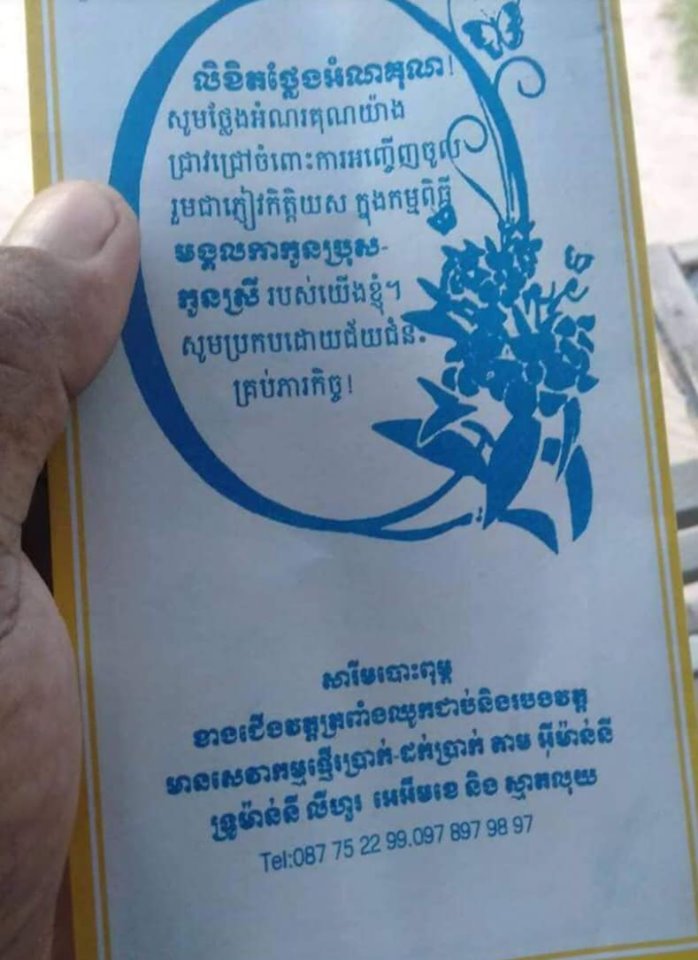 ខេត្តកំពត ៖ បុរសបានរួមរស់ជាមួយប្រពន្ធអស់រយៈពេល៤ឆ្នាំមកហើយ និងថែមទាំងមានកូនស្រីម្នាក់ទៀតផង ស្រាប់តែប្រពន្ធបែកគំនិតគំរាមសម្លាប់ខ្លួនឯង ដើម្បីបង្ខំឱ្យគាត់ព្រមផ្តិតមេដៃលែងលះ ស្រាប់តែចុងក្រោយ មិនបានប៉ុន្មានផង ក៏ត្រៀមចូលរោងការជាមួយប្រុសថ្មីទៅវិញ។