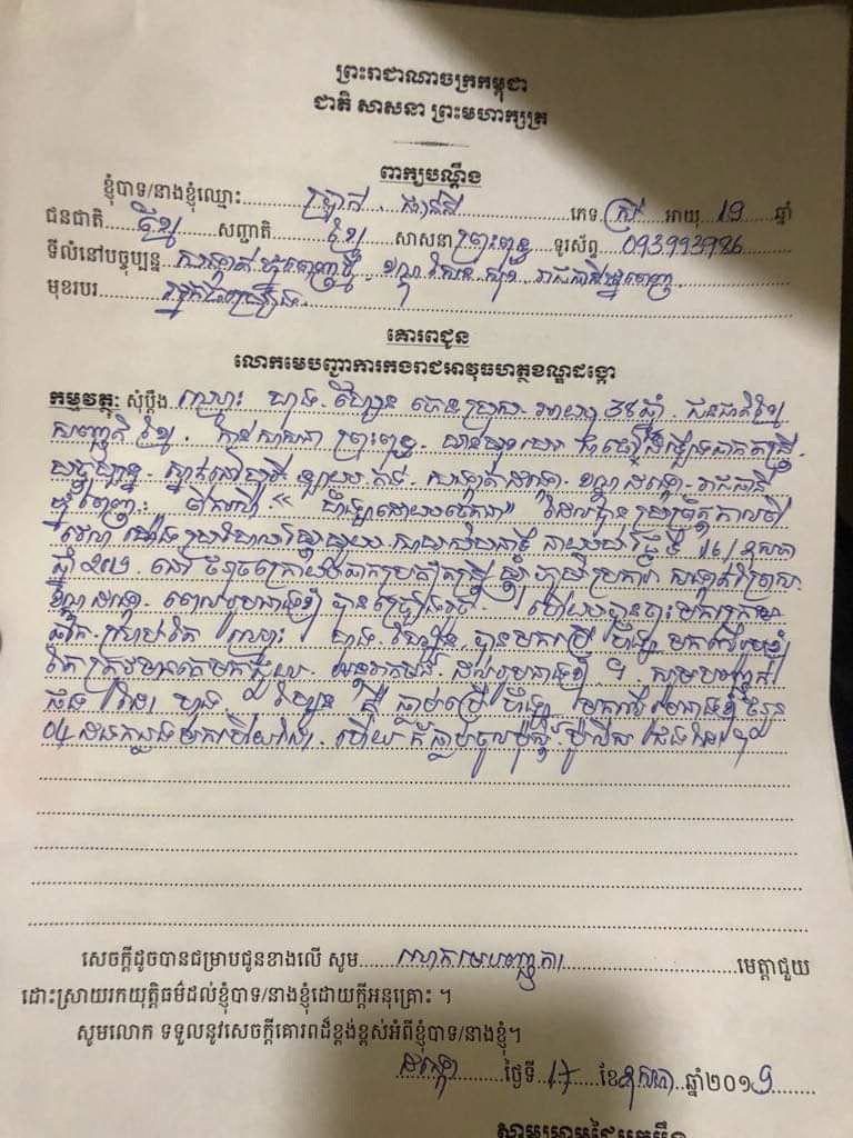 ដោយឡែក លោកស សោភ័ណ្ឌ មេបញ្ជាការកងរាជអាវុធហត្ថខណ្ឌដង្កោ បានថ្លែងបញ្ជាក់ថា លោកពិតជាបានទទួលពាក្យបណ្តឹងពីកញ្ញាប្រាក់ ផាន់នី ប្រាកដមែន តែដោយរកដំណោះស្រាយរវាងភាគីទាំងពីរមិនបាន ទើបលោកក៏បានបញ្ជូនសំណុំរឿងនេះ ទៅកាន់បញ្ជាការដ្ឋាន កងរាជអាវុធហត្ថរាជធានីភ្នំពេញ ដើម្បីដោះស្រាយបន្ត៕