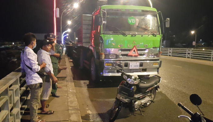 តាមប្រភពពីកន្លែងកើតហេតុ បានឱ្យដឹងថា នៅមុនពេលកើតហេតុ គេឃើញរថយន្តសណ្តោងកុងតឺន័រ១គ្រឿង ក្បាលពណ៌បៃតងខ្ចី ពាក់ស្លាកលេខភ្នំពេញ 3E-3400 ដឹកដុំដែកទម្ងន់រាប់តោន ធ្វើដំណើរតាមបណ្តោយផ្លូវជាតិលេខ១ ទិសដៅពីកើតទៅលិច លុះបើកឡើងស្ពានព្រះមុនីវង្សចាស់ បានប្រហែលជាង១០ម៉ែត្រ ស្រាប់តែដាច់ខ្សែកាបចំណង ធ្វើឱ្យដុំដែករមៀលទៅខាងឆ្វេងដៃបាក់ជញ្ជាំងដែករថយន្ត ហើយរមៀលធ្លាក់ទៅបុកបង្កាន់ដៃស្ពានបាក់ធ្លាក់ចុះក្រោមស្ពានដល់ដី រងការខូចខាតយ៉ាងដំណំ តែសំណាងល្អ មិនបណ្តាលឱ្យមនុស្សរងរបួសនោះទេ។