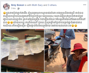 យោងតាមគណនីហ្វេសប៊ុកឈ្មោះ Srey Soeun បានសរសេរថា កាលពីថ្ងៃទី០៥ ខែមិថុនា ឆ្នាំ២០១៩ មានរឿងរ៉ាវដ៏គួរឱ្យសោកស្តាយមួយ របស់ប្តីប្រពន្ធ២នាក់ ដែលចាញ់បោកជនមិនស្គាល់មុខ អស់ទឹកប្រាក់ចំនួន១៨លានរៀល ដោយប្រាប់ថា ត្រូវរង្វាន់ធំចំនួន៣លានដុល្លារ ហើយនិងត្រាក់ទ័រ ចំនួន១គ្រឿង ថែមទៀតផង។ ដោយមានការសង្ស័យ ម្ចាស់វីងបានជជីកសួរពីដំណើររឿងហេតុអ្វីបានជាវេរលុយច្រើនដល់ម៉្លឹង? ដំបូងឡើយ ប្តីប្រពន្ធនោះបានព្យាយាមកុហកថា ពួកគាត់ទិញរបស់ប្រើប្រាស់។ លុះបន្ទាប់ពីឃើញវេរលុយក្នុងចំនួនយ៉ាងច្រើន និងច្រើនដងពេក ម្ចាស់វីងក៏ជជីកសួរបន្ថែមទៀត ទើបដឹងថា អ្នកបោកប្រាស់នោះតម្រូវឱ្យវេរលុយមុន៤៥០០ដុល្លារ ដើម្បីរត់ការផ្លូវមុន ទើបបែកធ្លាយថា ជាការបោកប្រាស់។