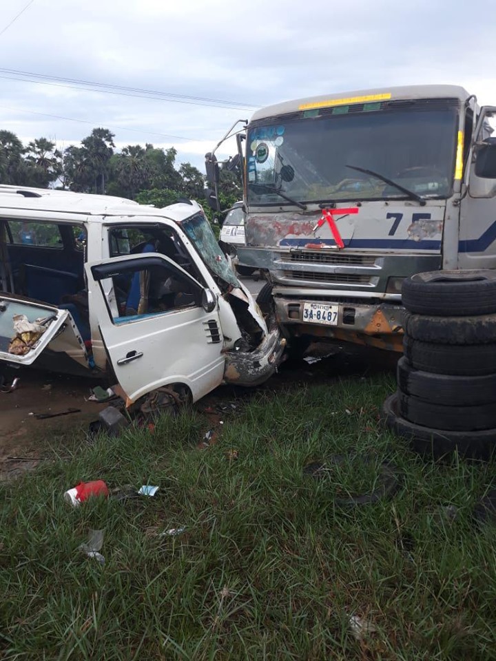 រថយន្តបង្ក ជាប្រភេទសមណ្តោងវែង ដឹកសុីម៉ង់ត៍ ពាក់ស្លាកលេខភ្នំពេញ 3A-8487 ចំណែករថយន្តរងគ្រោះ ម៉ាកសាំងយ៉ុង ប្រភេទ១២កៅអី ពាក់ស្លាកលេខភ្នំពេញ 2M-0467 ។