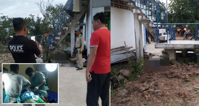 បាត់ដំបង៖ ប្តីប្រពន្ធ១គូនេះទើបមកពីធ្វើការនៅប្រទេសថៃ បានប៉ុន្មានថ្ងៃ ប្តីចាប់ក៏កើតក្តីប្រចណ្ឌជាមួយប្រពន្ធហួសហេតុ រហូតទប់ចិត្តលែងបាន ក៏យកកាំបិតកាប់ក្បាលប្រពន្ធបណ្តាលឲ្យរងរបួសធ្ងន់ ពេលឃើញប្រពន្ធដេកដួលនឹងដីហើយ បុរសជាប្តីស្មានថាស្លាប់ទៅហើយ ក៏បានយកកាំបិតចិតបន្លែចុងស្រួច អារកខ្លួនឯងបណ្តាលឲ្យស្លាប់ក្នុងថ្លុកឈាម។