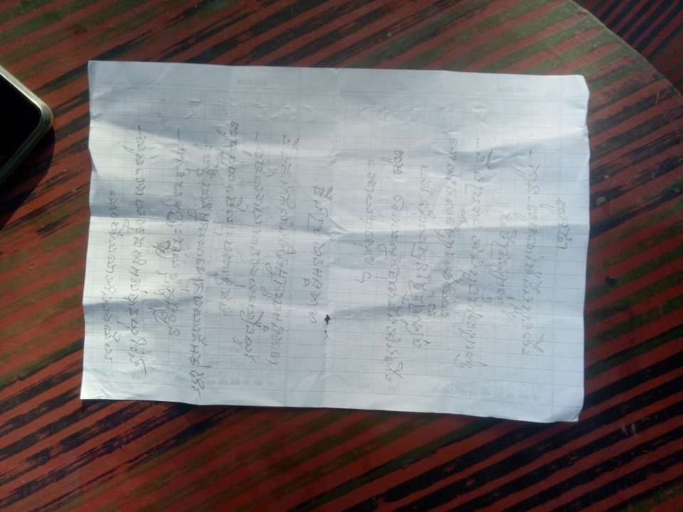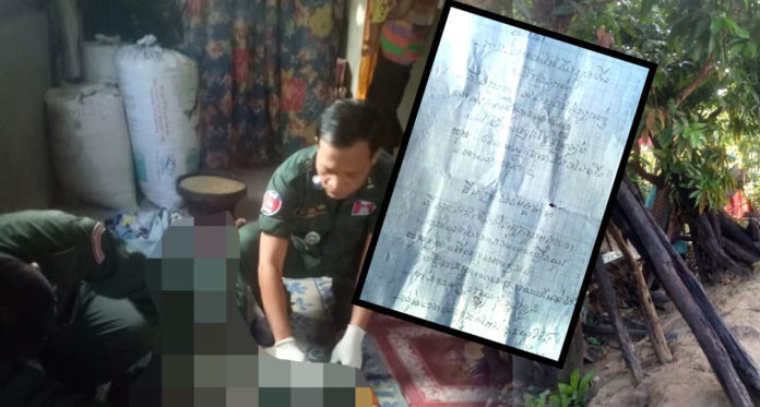 ជាមួយនេះ សមត្ថកិច្ចបានរកឃើញលិខិតបណ្តាំ១សន្លឹក ដែលជនរងគ្រោះបានបន្សល់ទុក ដោយមានខ្លឹមសារទាំងស្រុងថា “កូនសូមលា ម៉ែ និងប្អូន២ជាទីស្រលាញ់ និងប្រពន្ធ ទាំងប្អូនជាទីស្រលាញ់ លាទាំងអាឡោះអាល័យ ទៅដោយគ្មានថ្ងៃវិលត្រឡប់ សូមឱ្យអ្នកមានគុណទាំងពីរ ឱ្យបានសុខ។ និងប្រធានអង្គភាព និងកងកម្លាំង និងអ្នករួមអង្គភាព សូមឱ្យមានអាយុយឺនយូរ សូមជួយមើលគ្រួសារខ្ញុំផងខ្ញុំ សូមឱ្យអ្នកទាំងអស់ គ្នាអាយុវែង លាហើយលាទាំងអាល័យ…”។