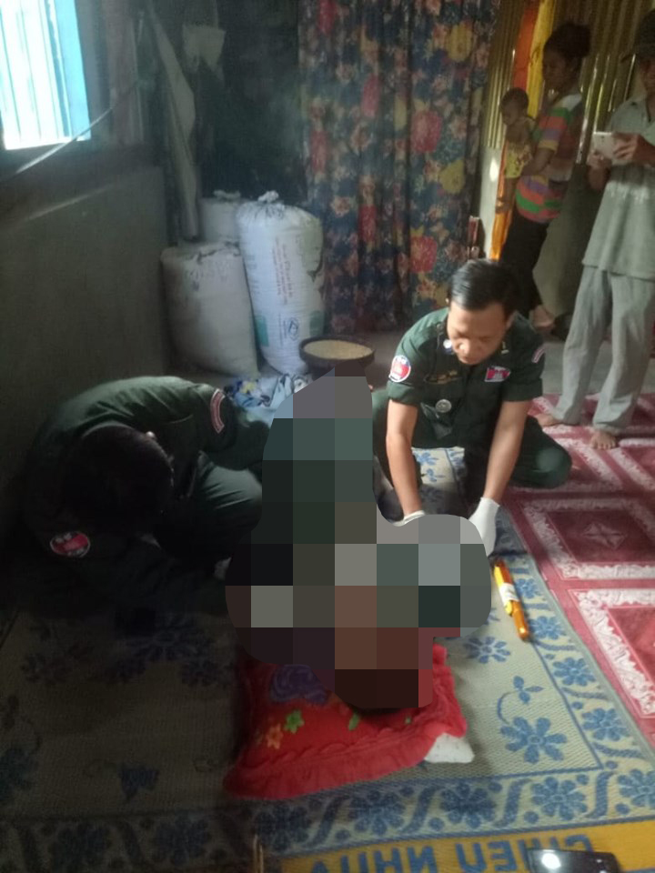 ក្រោយទទួលព័ត៌មាន កម្លាំងជំនាញបានសហការជាមួយកម្លាំងប៉ុស្តិ៍រដ្ឋបាល លោកមេភូមិនិងញាតិមិត្តនៃសពដើម្បីពិនិត្យសព និង ទីកន្លែងកើតហេតុ រួចបញ្ជាក់ថា ជនរងគ្រោះពិតជាបានធ្វើអត្តឃាតចងកខ្លួនឯងពិតប្រាកដមែន មូលហេតុ មានជំងឺប្រចាំកាយ។