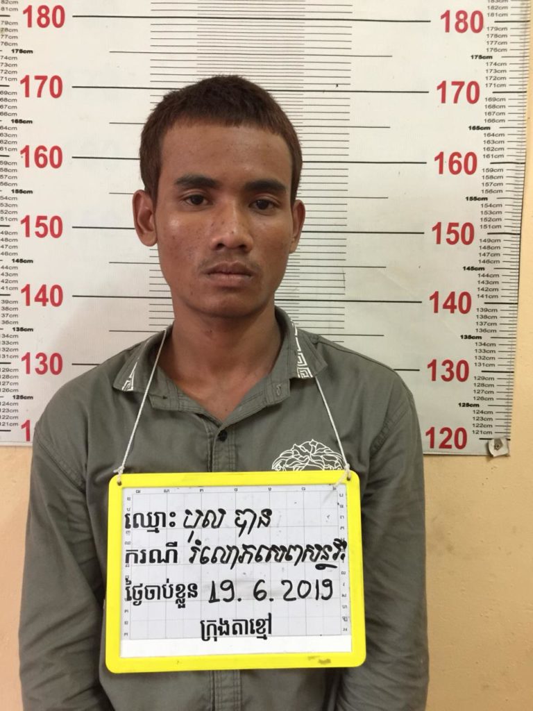 បន្ទាប់ពីសមត្ថកិច្ចទទួលព័ត៌មានខាងលើរួច ក៏ចុះធ្វើការស្រាវជ្រាវ រហូតឈានដល់ការចាប់ខ្លួនជនសង្ស័យបាននៅថ្ងៃទី១៩ ខែ មិថុនា ឆ្នាំ២០១៩ នាំយកទៅសាកសួរនៅអធិការដ្ឋាននគរបាលក្រុងតាខ្មៅ។