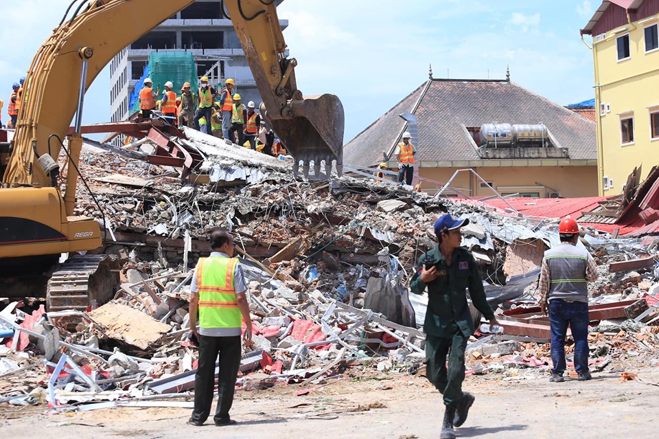 ខេត្តព្រះសីហនុ ៖ បន្ទាប់ពីទទួលបានព័ត៌មាននៃការបាក់ស្រុតអគារកម្ពស់៧ជាន់ កាលពីព្រឹកម៉ោង៥នេះនៅជិតកន្លែងលាងរថយន្តយីហោអារុណរះ ក្នុងសង្កាត់លេខ៤ ក្រុងព្រះសីហនុ ហើយត្រូវមន្ត្រីអ្នកនាំពាក្យក្រសួងដែនដី នគរូបនីយកម្ម និងសំណង់ បានប្រាប់ថា សំណង់អគារនេះមិនមានច្បាប់អនុញ្ញាត និងត្រូវអាជ្ញាធចុះហាមឃាត់២ដងមកហើយ តែម្ចាស់សំណង់មិនព្រមសហការ។ ស្រាប់តែប្រធានគណបក្សមួយ ចេញមុខនិយាយថា “ប្រសិនជាគ្មានច្បាប់សាងសង់ ម្ដេចបានបណ្ដោយអោយសាងសង់ ? បើឃាត់មិនស្ដាប់ម្ដេចមិនអនុវត្តន៍ច្បាប់?”។