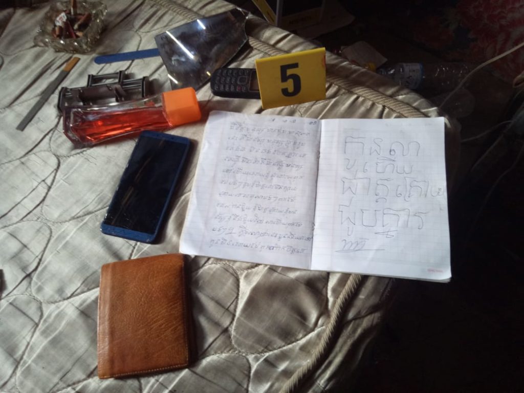 ក្រោយកើតហេតុ សមត្ថកិច្ចជំនាញបានចុះដល់កន្លែងកើតហេតុ បង្កើតគណៈកម្មការចម្រុះ ដើម្បីធ្វើការពិនិត្យសាកសពជនរងគ្រោះ និងឃើញមានស្លាកស្នាមនៅត្រង់ពោះមានស្នាម រោលខ្លោច ទំហំ ៨ គុណនឹង ៥ស.ម នៅត្រង់ខ្នងស្តាំ ក្រោមស្លាបប្រចៀវ មានស្នាមរោលខ្លោច ទំហំ ១០គុណុនឹង០,៥ស.ម។ តាមការសន្និដ្ឋានថា ជនរងគ្រោះពិតជាស្លាប់ដោយសារឧបករណ៍ឆក់ត្រីប្រាកដមែន។ ដោយឡែកនៅក្បែរសាកសព សមត្ថកិច្ចបានរកឃើញលិខិតបណ្តាំចំនួន២ច្បាប់ ដែលមានខ្លឹមសារថា “ជីវិតមនុស្សមានជួបមានព្រាត់ នេះគឺជានិស្ស័យ មនុស្សគ្រប់រូប តែងតែមិនចង់បែកគ្នាទេ តែធ្វើម៉េច វាគឺជានិស្ស័យមនុស្សទៅហើយ ឱ្យខ្ញុំសុំទោសពុកម៉ែ បងៗ រូបខ្ញុំជាតិនេះមិនស្តាយក្រាយទេ អរគុណបងៗ ពុកម៉ែដែលបានជួយខ្ញុំ ជាតិក្រោយខ្ញុំមាននិស្ស័យ ខ្ញុំនឹងជួបវិញ លាហើយ ពុកម៉ែ បងៗ។ ក្តីស្រលាញ់នេះ ប្អូននឹងយកទៅ កូនមិនឱ្យម៉ែពុកពិបាកចិត្តទេ កូនលាហើយ ជាតិក្រោយជួបគ្នា…”។