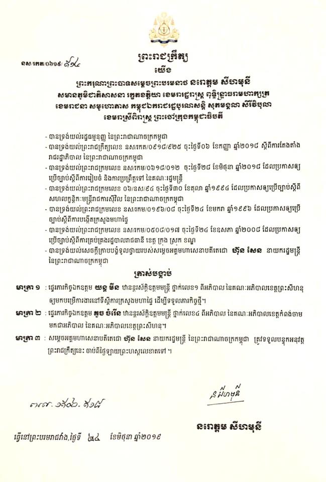 លោកគួច ចំរើន បច្ចុប្បន្នជាអភិបាលនៃគណៈអភិបាលខេត្តកំពង់ចាម ត្រូវបានសម្តេចហ៊ុន សែន ប្រកាសផ្ទេរមុខតំណែងទៅធ្វើជាអភិបាលនៃគណៈអភិបាលខេត្តព្រះសីហនុ វិញ ដោយជំនួសឯកឧត្តម យន្ត មីន ដែលបានលាលែងពីតំណែង បន្ទាប់ពីមានហេតុការណ៍បាក់ស្រុតរលំអគារ៧ជាន់ កាលពីថ្ងៃទី២២ ខែមិថុនា ឆ្នាំ២០១៩ ស្លាប់មនុស្ស២៨នាក់ និងរងរបួសចំនួន២៦នាក់។