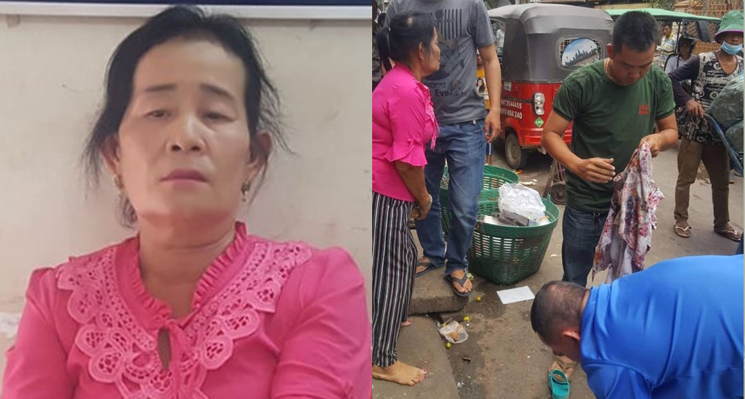 ស្ត្រីសង្ស័យមានឈ្មោះអុឹម ស្រូយ ភេទស្រី អាយុ៥៧ឆ្នាំ ជនជាតិខ្មែរ មុខរបរលក់បន្លែ ស្នាក់នៅផ្ទះភូមិគោកសណ្ដែក ឃុំស្អាង ស្រុកស្អាង ខេត្តកណ្ដាល។