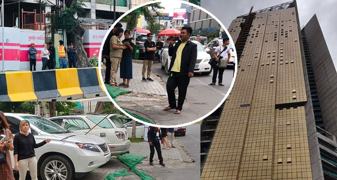 ប្រជាពលរដ្ឋនៅក្បែរកន្លែងកើតហេតុបានឲ្យដឹងថា មុនពេលកើតហេតុគេឃើញរថយន្ត១គ្រឿង ម៉ាកឡិចសុីស ពណ៌ស ពាក់ស្លាកលេខភ្នំពេញ 2AD-4994 ដែលបានចតពីមុខហាងមួយក្បែរអគារកម្ពស់៤២ជាន់ Glod Tower។ ពេលនោះស្រាប់តែមានដែកថ្នាំងអំពៅ១ដើមប្រវែងជាង១ម៉ែត្រ និងដែកសំណាញ់បានធ្លាក់ចុះមកដោយជាប់នឹងគម្របម៉ាសុីនរថយន្ត និងបែកកញ្ចក់ផ្នែកខាងមុខតែម្តង ប៉ុន្តែមិនបណ្តាលឲ្យអ្នកធ្វើដំណើរឬអ្នកនៅក្បែរនោះរងគ្រោះថ្នាក់ទេ។