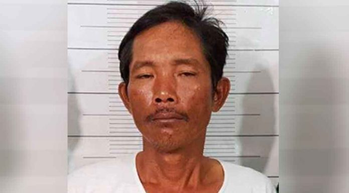 ជនសង្ស័យដែលចាប់ស្រីថើប១ខ្សឺត ត្រូវសមត្ថកិច្ចចាប់វាយខ្នោះនេះ មានឈ្មោះអឿ គីមយាង អាយុ៤០ឆ្នាំ មុខរបរកម្មករ មានលំនៅក្នុងភូមិព្រែកតាឯក ឃុំត្រើយស្លា ស្រុកស្អាង។