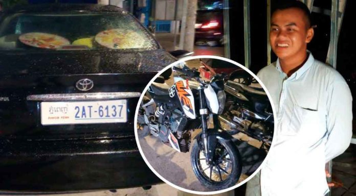 យោងតាមសម្តីម្ចាស់រថយន្ត បានប្រាប់សមត្ថកិច្ចថា ដំបូងឡើយ ពួកគាត់មានគ្នា៤ទៅ៥នាក់ បានអង្គុយផឹកស៊ីជិតកន្លែងកើតហេតុ ខណៈកំពុងតែផឹកស៊ីក៏ស្រាប់តែឃើញជនសង្ស័យម្នាក់ជិះម៉ូតូមួយគ្រឿងម៉ាកឌូក ពណ៌សលាយខ្មៅ ពាក់ស្លាកលេខភ្នំពេញ 1DB-0895 មក ឈប់ក្បែររថយន្តរបស់គាត់ម៉ាកកាមរីបាឡែន ពណ៌ខ្មៅ ពាក់ស្លាកលេខភ្នំពេញ 2AT-6137 ដែលចតនៅកន្លែងកើតហេតុ។