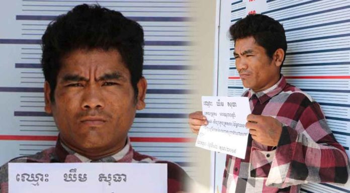 ជនសង្ស័យដែលត្រូវកម្លាំងអាវុធហត្ថចាប់ខ្លួន មានឈ្មោះឃឹម សុធា អាយុ៣០ឆ្នាំ មុខរបរមិនពិតប្រាកដ មានលំនៅក្នុងភូមិឃុំ កើតហេតុខាងលើ។