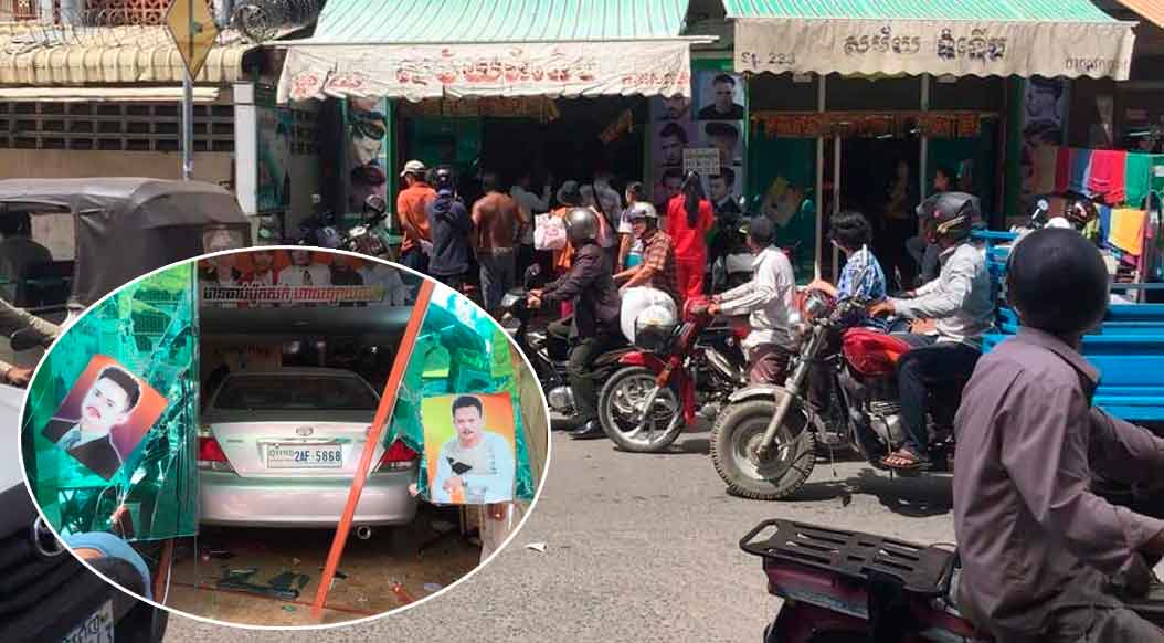 ភ្នំពេញ៖ បុរសម្នាក់បានបើករថយន្តកាមរីបាឡែន ចូទៅកាត់សក់ក្នុងហាង “កាត់សក់សម័យទំនើប” ស្រាប់តែច្រឡំជាន់ហ្គែរបុកចូលហាងខាងលើ បណ្តាលឲ្យមនុស្ស៣នាក់រងរបួសធ្ងន់ និងបែកបាក់ខូចខាតរបស់ក្នុងហាង។