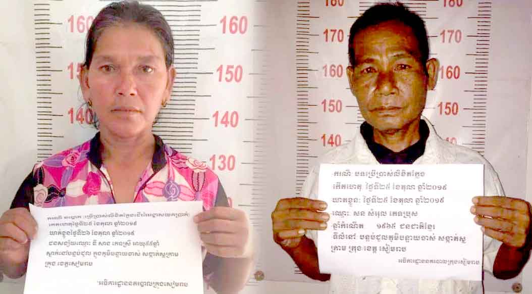 ខេត្តសៀមរាប ៖ បុរសស្ត្រីវ័យចំណាស់២នាក់ត្រូវបានសមត្ថកិច្ចចាប់ឃាត់ខ្លួនពាក់ព័ន្ធនឹងករណីបទឆបោកប្រើប្រាស់លិខិតក្លែង ដើររៃអង្គាសបោកយកប្រាក់ (អង្គាសបច្ច័យបុណ្យកឋិន) តាមការរាយការណ៍ពីព្រះចៅអធិការវត្តស្វាយរមៀត។