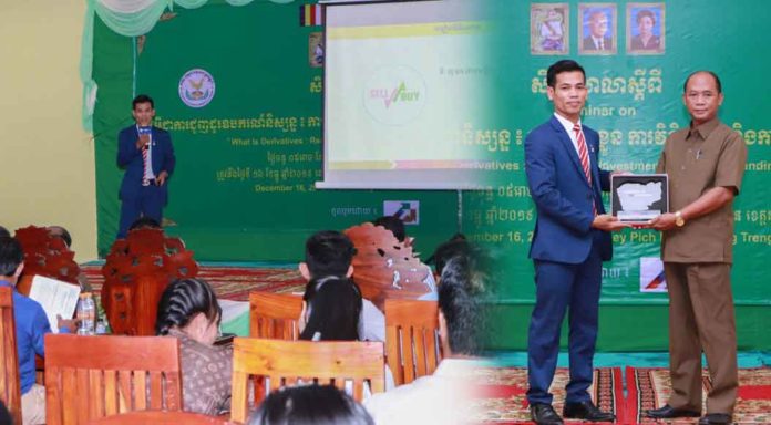 ស្ទឹងត្រែង៖ កាលពីថ្ងៃទី១៦ ខែធ្នូ ឆ្នាំ២០១៩ ក្រុមហ៊ុនហ្គោលដេន អេហ្វអិកស៍លីង ឃែភីថល បានចូលរួមក្នុងសិក្ខាសាលាតាមបណ្ដាខេត្តនៅខេត្តស្ទឹងត្រែង ក្រោមប្រធានបទ “អ្វីជាការជួញដូរឧបករណ៍និស្សន្ទ ៖ ការត្រៀមខ្លួនការវិនិយោគនិងការយល់ដឹងពាក់ព័ន្ធ?”។