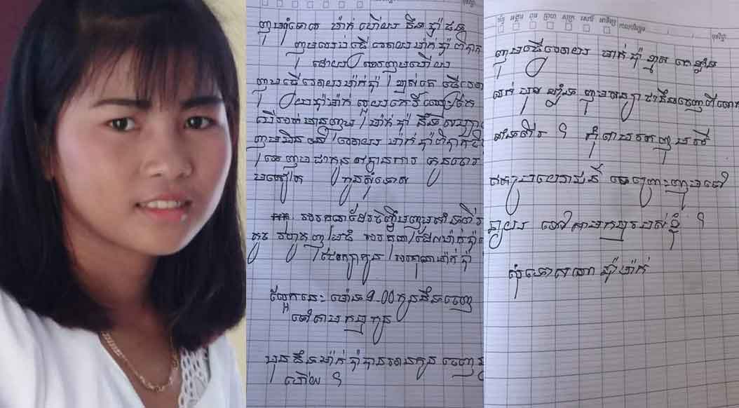 ភ្នំពេញ ៖ យុវតីរូបស្រស់ម្នាក់មិនដឹងជាមានវិបត្តិផ្លូវចិត្តរឿងអ្វី ក៏ស្រាប់តែវេចបង្វេចចុះចេញពីផ្ទះបាត់ដោយបន្សល់ទុកលិខិតបណ្តាំចំនួន២ច្បាប់ សរសេររៀបរាប់ពីកំហុសរបស់ខ្លួននិងបង្ហាញពីការសុំទោសរាល់ទង្វើដែលខ្លួនធ្វើខុសឆ្គងនាំឱ្យអាប់ឱនដល់ឪពុកម្តាយ។