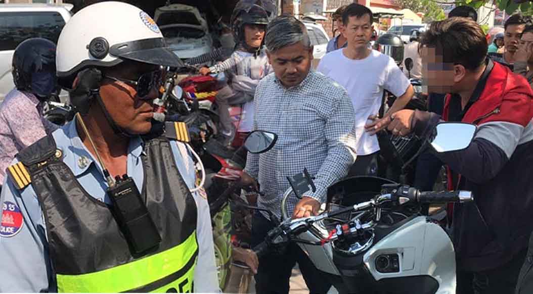 ស្រែកចោទប៉ូលិសថា​ “ចោរ” ពេលដឹកមកផាកពិន័យ ដោយសារជិះម៉ូតូបិទតែមរញ៉េរញ៉ៃ