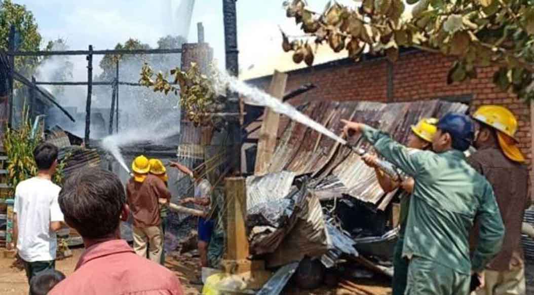 ខេត្តកំពង់ចាម ៖ ស្ត្រីម្នាក់បានចេញទៅធ្វើការឆ្ងាយផ្ទះដោយទុកឱ្យកូនស្រីនៅចាំផ្ទះតែម្នាក់ឯង ស្រាប់តែអកុសលកើតមានករណីទុស្សេខ្សែភ្លើង បង្កជាអគ្គិភ័យឆាបឆេះផ្ទះអស់ទាំងស្រុង។