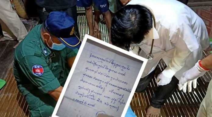 ខេត្តកណ្តាល ៖ យុវជនម្នាក់បានជួបជុំគ្នាជាមួយមិត្តភក្តិផឹកទឹកត្នោតជូរអស់ជាច្រើនលីត្រ រហូតដល់ស្រវឹងធ្លាក់ភ្នែកក៏ស្រាប់តែបែកគំនិតគិតខ្លីចងកសម្លាប់ខ្លួន ដោយបន្សល់ទុកលិខិតបណ្តាំ១សន្លឹក ផ្តែផ្តាំឱ្យទុកទ្រព្យសម្បត្តិទាំងអស់របស់ខ្លួនឱ្យទៅមនុស្សស្រីម្នាក់ ដោយអះអាងថា “ខ្ញុំស្រលាញ់នាងណាស់”។