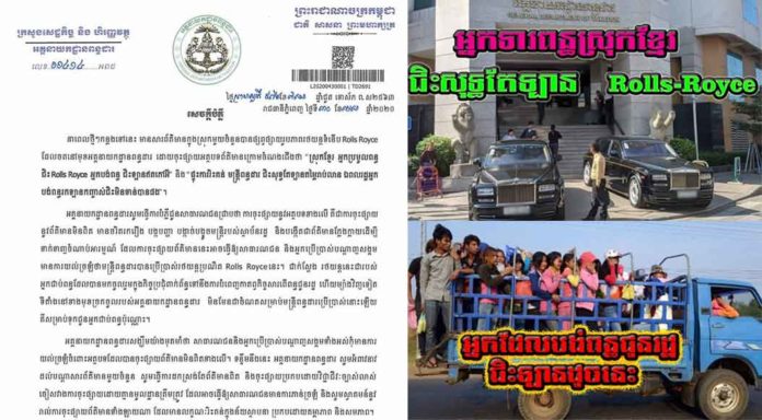 ស្ថាប័នពន្ធដារ បំភ្លឺ “ស្រុកខ្មែរ អ្នក ប្រមូលពន្ធ ជិះ Rolls Royce អ្នកបង់ពន្ធជិះឡានឥតកៅអី”
