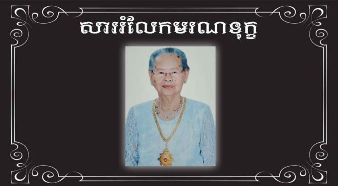 ក្នុងឱកាសប្រកបដោយទុក្ខដ៏ក្រៀមក្រំនេះ យើងខ្ញុំទាំងអស់គ្នា សូមចូលរួមរំលែកនូវមរណទុក្ខជាមួយសម្តេចតេជោនាយករដ្ឋមន្ត្រី សម្តេចកិត្តិព្រឹទ្ធបណ្ឌិត និងក្រុមគ្រួសារ ដោយសេចក្តីសង្វេគជាទីបំផុត និងសូមឧទ្ទិសបួងសួងសូមឲ្យវិញ្ញាណក្ខន្ធអ្នកឧកញ៉ា ព្រឹទ្ធមហាឧបាសិកា ធម្មញ្ញាណវិវឌ្ឍនា បានទៅទៅកាន់សុគតិភព កុំបីខានឡើយ៕