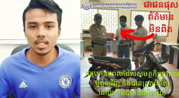 បន្ទាប់ពីបុរសម្នាក់បានបង្ហោះសារមិនពិត ចោទប្រកាន់លើសមត្ថកិច្ចថា បានស៊ីគ្រឿងម៉ូតូ ពេលរក្សាទុកក្នុងបរិវេណស្នងការនគរបាលរាជធានីភ្នំពេញនោះ កាលពីព្រឹកថ្ងៃទី០៦ ខែមិថុនា ឆ្នាំ២០២០នេះ កម្លាំងសមត្ថកិច្ចបានហៅយុវជនខាងលើមកអប់រំ និងធ្វើកិច្ចសន្យា។