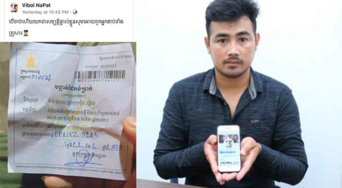 ប្រភពដដែលបន្តថា ក្រោយពីបានឃើញការផុសហ្វេសប៊ុកជេរប្រមាថអាយុជីវិតពីសំណាក់ម្ចាស់គណនីហ្វេសប៊ុកខាងលើរួចមក ក្រុមការងារព័ត៌មាន និងប្រតិកម្មរហ័សនៃស្នងការដ្ឋាននគរបាលរាជធានីភ្នំពេញ បានទាក់ទងទៅបុរសឈ្មោះយ៉ុន វិបុល ដែលប្រើប្រាស់គណនីហ្វេសប៊ុកឈ្មោះ Vibol Napat ផុសជេរប្រមាថ និងមើលងាយដល់អាយុជីវិតសមត្ថកិច្ចដែលបានធ្វើការផាកពិន័យគាត់កាលពីថ្ងៃទី២២ ខែមិថុនា ឆ្នាំ២០២០ លើករណីបើកបរមិនពាក់មួកសុវត្ថិភាពនៅក្នុងមូលដ្ឋានខណ្ឌពោធិ៍សែនជ័យ។