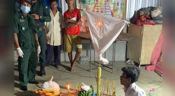 បន្ទាប់ពីទទួលបានព័ត៌មានភ្លាម សមត្ថកិច្ចផ្នែកពិនិត្យកន្លែងកើតហេតុស្រុក សហការជាមួយកម្លាំងប៉ុស្តិ៍្បគ្រូពេទ្យមណ្ឌលសុខភាពឃុំ ក្រុមប្រឹក្សាឃុំ លោកមេភូមិ និងក្រុមគ្រួសារសពបានធ្វើការពិនិត្យសាកសពឃើញថា មានស្នាមខ្លោចត្រង់មេដៃខាងស្តាំប្រវែង២សង់ទីម៉ែត្រក្រៅពីពុំមានស្លាកស្នាមអ្វីគួរឱ្យកត់សំគាល់ឡើយ។