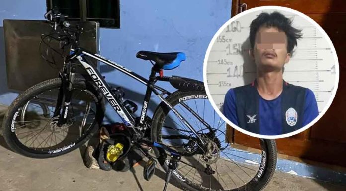 ខេត្តស្វាយរៀង ៖ ជនសង្ស័យម្នាក់ត្រូវបានកម្លាំងសមត្ថកិច្ចនគរបាលចាប់ឃាត់ខ្លួន តាមពាក្យបណ្តឹងរបស់ជនរងគ្រោះ ពាក់ព័ន្ធករណីចោរកម្មលួចកង់ប្រភេទហាត់ប្រាណ ខណៈម្ចាស់ផ្ទះជួលមិននៅ។ ការឃាត់ខ្លួននេះ ធ្វើឡើងកាលពីវេលាម៉ោង៩និង១០នាទីយប់ ថ្ងៃទី០៦ ខែតុលា ឆ្នាំ២០២០ ក្នុងភូមិបាវិតកណ្តាល សង្កាត់បាវិត ក្រុងបាវិត ខេត្តស្វាយរៀង។
