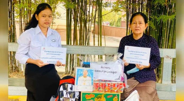ភ្នំពេញ ៖ នៅថ្ងៃសុក្រ ទី១១ ខែធ្នូ ឆ្នាំ២០២០ សម្តេចកិត្តិព្រឹទ្ធបណ្ឌិត ប៊ុន រ៉ានី ហ៊ុនសែន ប្រធានកាកបាទក្រហមកម្ពុជា បានចាត់ឱ្យសហការី ចុះជួបសំណេះសំណាល សួរសុខទុក្ខ សាកសួរពីស្ថានភាពរស់នៅ និងឧបត្ថម្ភអំណោយជួយសម្រាលការលំបាកផ្នែកជីវភាពដល់អ្នកស្រី ញឹម សុខា ជាតារាសម្តែងវ័យ ៥៦ឆ្នាំ កំពុងមានជំងឺប្រចាំកាយ ហើយឆ្លៀតពេលធ្វើការងារផ្ទះឱ្យគេ និងមានកូនស្រីអាយុ ១៥ឆ្នាំ ក្នុងបន្ទុក កំពុងស្នាក់នៅផ្ទះជួល ក្នុងរាជធានីភ្នំពេញ។