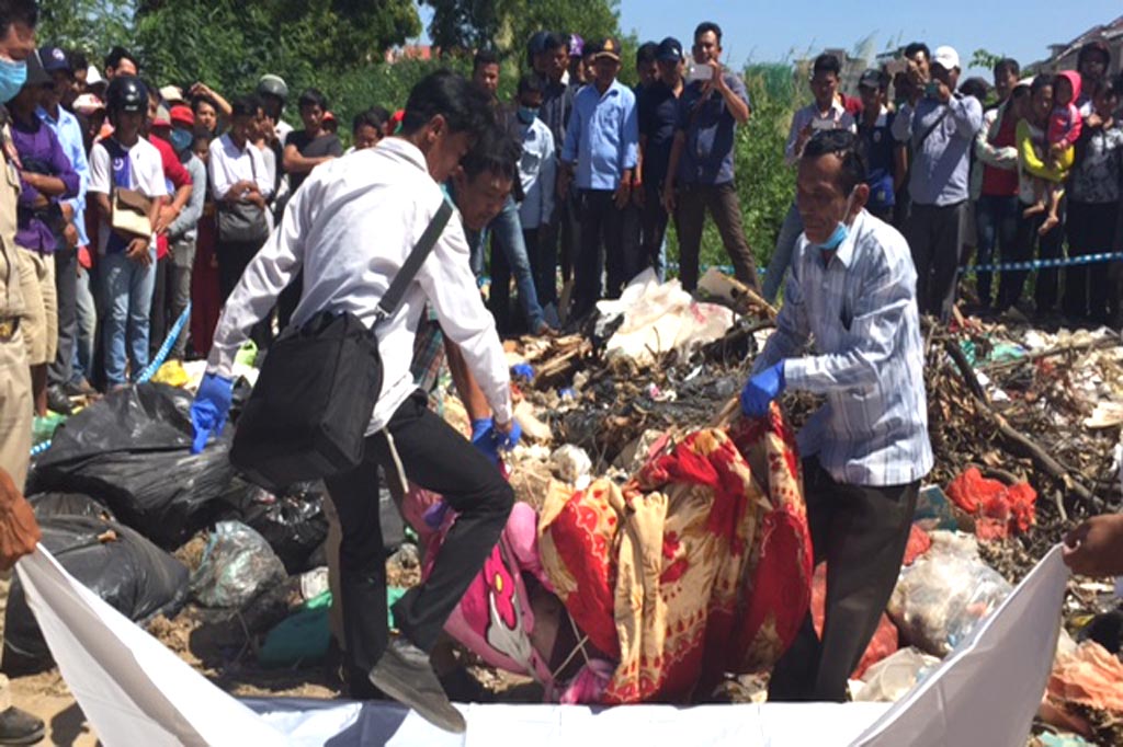 ភ្នំពេញ៖ សពនារីជាបុគ្គលិកក្លឹប៥៥ម្នាក់ ត្រូវឃាតករឹតកសម្លាប់ហើយរុំភួយចងរឹតនឹងខ្សែ នីឡុងយកទៅប្លុងចោលនៅលើគំនរសំរាមមួយកន្លែង នៅចំណុចក្បែរដងផ្លូវបេតុង១០០៣ ក្រុម៤ ភូមិទំនប់ សង្កាត់ភ្នំពេញថ្មី ខណ្ឌសែនសុខ បង្កភាពភ្ញាក់ផ្អើលកាលពីម៉ោង១០និង៣០នាទីព្រឹកថ្ងៃទី១៦ ខែវិច្ឆិកា ។