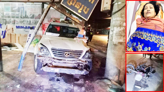 ហេតុ ម៉ូតូសណ្តោងរទេះរបស់ជនរងគ្រោះ បានបត់ឆ្វេង បំណងឆ្លងផ្លូវ ស្របពេលនោះក៏មានរថយន្តទំនើប ១គ្រឿង ម៉ាក Lexus GX-470 ស៊េរីឆ្នាំ២០០៣ ពណ៌ទឹកមាស ពាក់ស្លាកលេខ ភ្នំពេញ 2AD-9788 បើកបរដោយ បុរសម្នាក់ស្ថិតក្នុងសភាពស្រវឹងស្រាជោក បើកបរក្នុងទិសដៅពីកើតទៅលិច ក្នុងល្បឿនលឿនខ្លាំង រួចក៏ជ្រុលបុកយ៉ាងពេញទំហឹង បណ្តាលឱ្យយុវជនជាអ្នកបើកម៉ូតូ ស្លាប់នៅនឹងកន្លែងយ៉ាងអាណោចអាធ័ម ចំណែកស្ត្រីជាម្តាយ រង