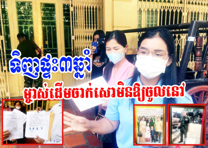បានមកធ្វើសកម្មភាពកាត់សោផ្ទះរបស់នាងចោល ហើយចាក់សោថ្មី មិនឱ្យរូបនាងចូលមកនៅ ជាហេតុធ្វើឱ្យរូបនាងដែលជាម្ចាស់ផ្ទះស្របច្បាប់ កើតទុក្ខមិនសុខចិត្ត រាយការណ៍ជូនអាជ្ញាធរមូលដ្ឋាន ដើម្បីសុំកាត់សោចូលមកនៅវិញ។