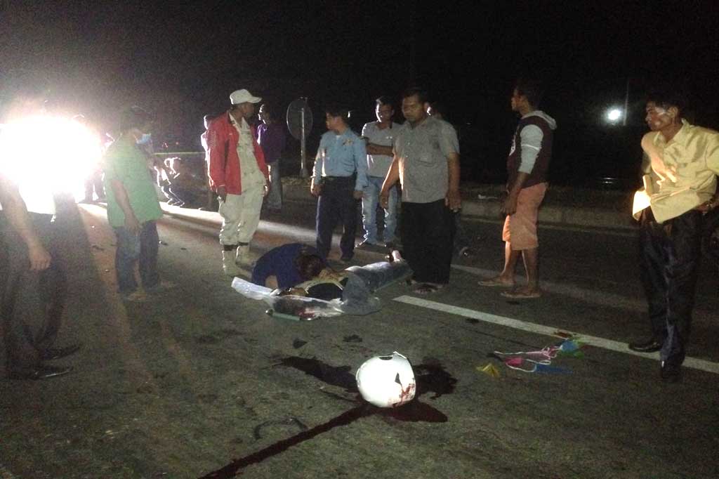ភ្នំពេញ៖ បុរសម្នាក់បានស្លាប់ ខណៈពេលជិះម៉ូតូមកពីលេងផ្ទះគូដណ្តឹងនៅម្តុំព្រែកក្តាមបានជិះទៅបុករបាំងថ្មដាក់បាំងការដ្ឋានជួសជុលផ្លូវដែលមិនមានចំណាងផ្លាតបណ្តលឲ្យផ្លោងដួល បោកក្បាលនឹងរបាំងថ្មស្លាប់ភ្លាមៗ កាលពីវេលាម៉ោង១២និង២០នាទីរំលងអាធ្រាត្រឈានចូលថ្ងៃទី១២ ខែធ្នូ ឆ្នាំ២០១៦ ត្រង់ចំនុចតាមបណ្តោយផ្លូវជាតិលេខ៥ជិតនិងក្រុមហ៊ុន ម៉ែន សារុន ស្ថិតក្នុងក្រុម៣ ភូមិគ្រួស សង្កាត់សំរោងខណ្ឌព្រែកព្នៅ ។