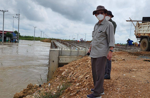 ភ្នំពេញ ៖ លោកលឹម គានហោ រដ្ឋមន្ត្រីក្រសួងធនធានទឹកនិងឧតុនិយម កាលពីព្រឹកថ្ងៃទី០៩ ខែតុលា ឆ្នាំ២០២២ អមដំណើរដោយថ្នាក់ដឹកនាំក្រសួង រួមជាមួយក្រុមមន្រ្តីបច្ចេកទេស បានចុះពិនិត្យលទ្ធភាពក្នុងការរំដោះទឹកពីស្ទឹង ព្រែកត្នោត ដើម្បីបង្ហូរទម្លាក់ចូលទៅក្នុងទន្លេ តាមរយៈប្រឡាយ ៩៤ និង៩៦ នៅក្នុងភូមិសាស្រ្តសង្កាត់កំពង់សំណាញ់ ក្រុងតាខ្មៅ ខេត្តកណ្ដាល ដើម្បីបង្ការការជន់លិចតំបន់ក្បែរនោះ។