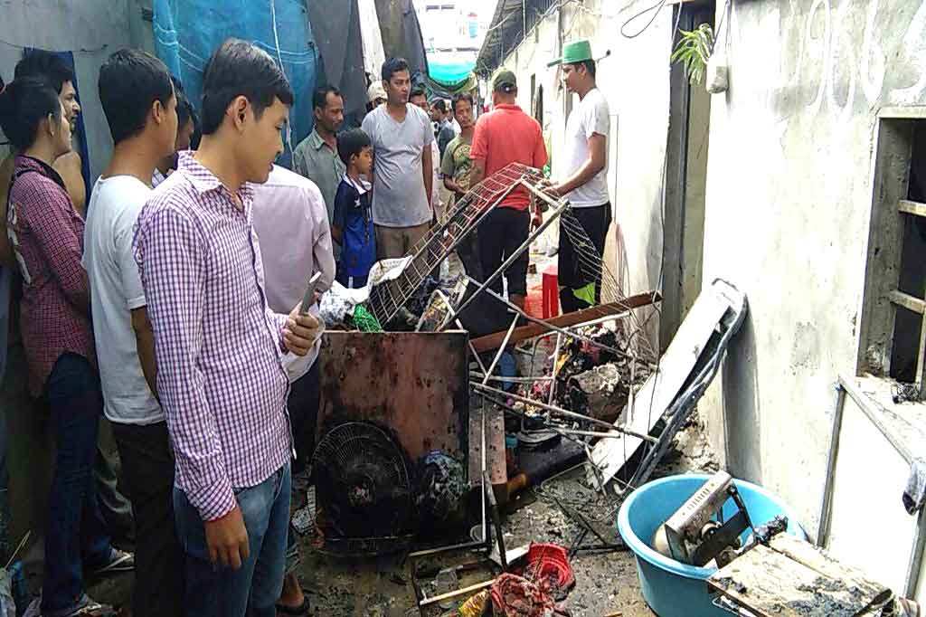 ភ្នំពេញ៖ បន្ទប់ជួលស្នាក់នៅរបស់កម្មករ ចំនួន៤បន្ទប់ ដែលម្ចាស់បានចាកចេញទៅបំពេញ ការងារអស់ (ចាក់សោទ្វារចោល) ត្រូវបាន អគ្គិភ័យឆាបឆេះយ៉ាងសន្ធោសន្ធៅ បណ្តាល ឱ្យខូចខាតទាំងស្រុង បង្កឱ្យមានការភ្ញាក់ផ្អើល ឡើង កាលពីវេលាម៉ោង៩និង៣០នាទីព្រឹកថ្ងៃទី២២ ខែធ្នូ ឆ្នាំ២០១៦ នៅចំណុចផ្សារសុភមង្គល ស្ថិតក្នុងក្រុមទី៥ ភូមិបាក់ទូក សង្កាត់ទួលសង្កែ ខណ្ឌប្ញស្សីកែវ ។