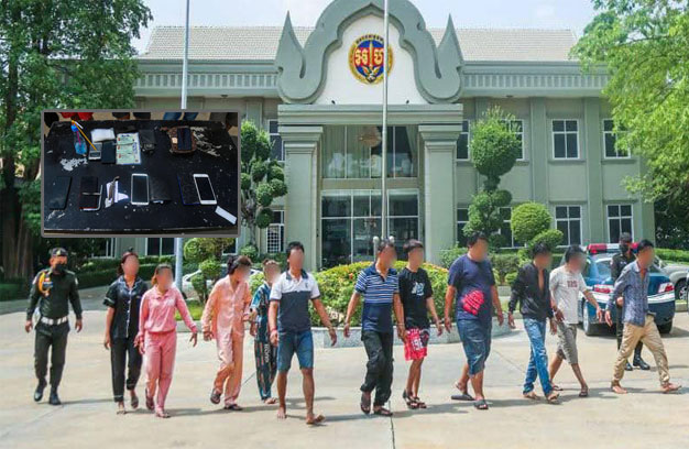 ជនសង្ស័យទាំង១១នាក់ ដែលត្រូវបានកម្លាំងជំនាញអាវុធហត្ថចាប់ឃាត់ខ្លួន រួមមាន ទី១-ឈ្មោះកែវ ល័ក្ខ ភេទ ស្រី អាយុ២៩ឆ្នាំ។ ទី២-ឈ្មោះយឹម ស្រីនី ភេទស្រី អាយុ២០ឆ្នាំ។ ទី៣-ឈ្មោះនួន រ៉ាវី ភេទប្រុស អាយុ២៧ឆ្នាំ។ ទី៤-ឈ្មោះសុខ ដា ហៅម៉ាប់ ភេទប្រុស អាយុ៣៧ឆ្នាំ។ ទី៥-ឈ្មោះហៃ បញ្ញា ភេទប្រុស អាយុ៣៦ឆ្នាំ។ ទី៦-ឈ្មោះនាង និត ភេទប្រុស អាយុ៤៣ឆ្នាំ។ ទី៧-ឈ្មោះវ៉ែន ស្រីស្រស់ ភេទស្រី អាយុ២៩ឆ្នាំ។ ទី៨-ឈ្មោះនួន ស្រីនីត ភេទស្រី អាយុ២៦ឆ្នាំ។ ទី៩-ឈ្មោះឃីម ណារ៉ូ ភេទប្រុស អាយុ៣៨ឆ្នាំ។ ទី១០-ឈ្មោះចិន្តា រ៉ានុត ភេទប្រុស អាយុ២០ឆ្នាំ និងទី១១-ឈ្មោះធី រិទ្ធ ភេទប្រុស អាយុ៣៦ឆ្នាំ។