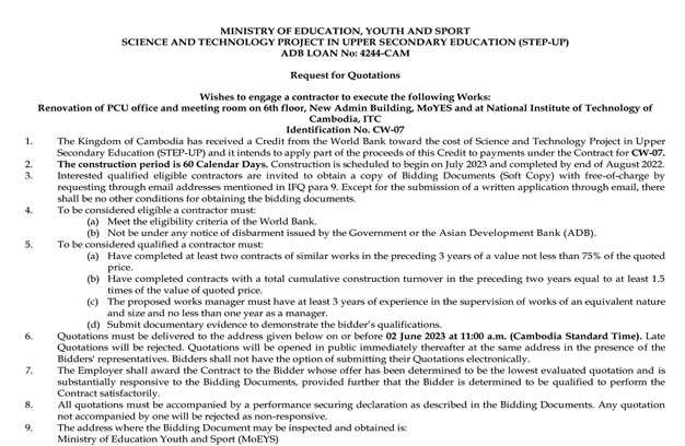 Homeព័ត៌មានជាតិសេចក្តីជូនដំណឹងរបស់ ក្រសួងអប់រំ យុវជន និងកីឡា ព័ត៌មានជាតិព្រឹត្តិការណ៍សង្គម សេចក្តីជូនដំណឹងរបស់ ក្រសួងអប់រំ យុវជន និងកីឡា By Davin May 18, 2023 0 0 Share FacebookTwitterPinterestWhatsApp RELATED ARTICLES ព័ត៌មានជាតិ សេចក្ដីជូនដំណឹង ស្ដីពី ក្រសួងសុខាភិបាល November 3, 2025 ព័ត៌មានជាតិ នាយករដ្ឋមន្ត្រីកម្ពុជា ណែនាំ១២ចំណុច បើកបវេសនកាល២០២៥-២០២៦ November 1, 2025 ព័ត៌មានជាតិ កម្ពុជា បន្តធ្លាក់ភ្លៀង ដល់ថ្ងៃ២វិច្ឆិកា November 1, 2025