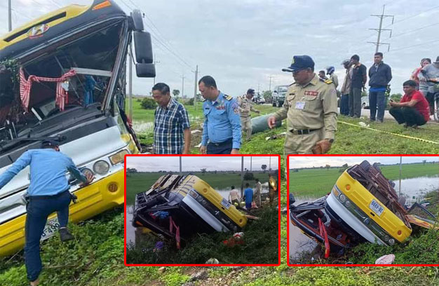តៃកុងងងុយដេក ព្រូបើកជំនួស ក្រឡាប់ឡានក្រុង របួស២៧នាក់