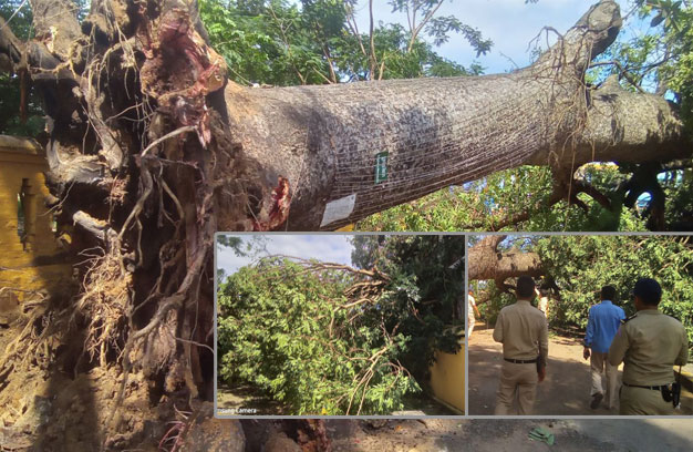 ដើមឈើ ១ដើមធំ ដែលបាក់រលំទាំងឫសខាងលើនេះ ត្រូវបានគេអះអាងថា ជាដើមគ្រាប់បែក ដែលមានអាយុ កាល ស្មើនឹងអគារសាលាខេត្តចាស់ (ជំនាន់បារាំង) គិតមកដល់សព្វថ្ងៃ មានអាយុកាលប្រមាណ ៧០មក ហើយ។ ដើមគ្រាប់បែកនេះ បច្ចុប្បន្នជាជម្រករបស់សត្វជ្រឹង ប្រមាណជាង ១០ម៉ឺនក្បាល កំពុងរស់នៅ។តាមប្រភពពីប្រជាពលរដ្ឋ នៅក្បែរកន្លែងកើតហេតុ បានឱ្យដឹងថា នៅមុនពេលកើតហេតុ កាលពីវេលា ម៉ោងប្រ មាណ ១០ព្រឹក ថ្ងៃទី០៦ ខែវិច្ឆិកា ឆ្នាំ២០២៣ នៅសុខៗ ស្រាប់តែដើមគ្រាប់បែក ១ដើមធំ ស្ថិតនៅចុងខាងជើងគេ បានដួលរលំទាំងឫស សង្កត់ទៅលើជ្រុងអគារ នៃមន្ទីរអភិវឌ្ឍន៍ជនបទខេត្ត បណ្តាលឱ្យរងការខូចខាតតិចតួច តែសំណាងល្អ ពុំបង្កឱ្យមានគ្រោះថ្នាក់ដល់មនុស្សណាម្នាក់ទេ គ្រាន់តែធ្វើឱ្យសត្វជ្រឹង រាប់រយក្បាលបានងាប់ ដោយមែកឈើសង្កត់ ខណៈដែលខ្លះហើរចេញទាន់។