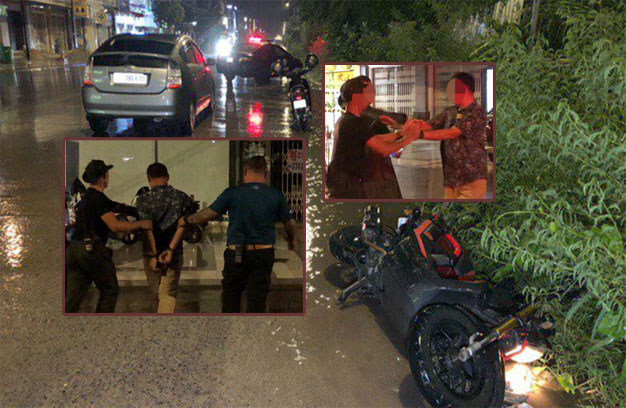 ភ្នំពេញ ៖ បុរសម្នាក់ បើកបររថយន្ត ១គ្រឿង ក្នុងល្បឿនយ៉ាងលឿន រួចជ្រុលបុកម៉ូតូ ១គ្រឿង ជិះដោយនារីម្នាក់ ចំពីក្រោយ បណ្តាលឱ្យថ្លោះចង្កេះ រួចព្យាយាមបើករត់ តែត្រូវបុរសជាមន្ត្រីនគរបាលម្នាក់ ប្រទះឃើញ ក៏បើក រថយន្តទៅស្ទាក់ពីមុខ និងរាយការណ៍សុំអន្តរាគមន៍ពី សមត្ថកិច្ច ស្រាប់តែអ្នកបើកបររថយន្តបង្កហេតុ ខឹង សម្បា វាយទាំងសមត្ថកិច្ចថែមទៀត ទីបំផុតត្រូវសមត្ថកិច្ចប្រើធម៌ក្តៅ ចាប់វាយខ្នោះ នាំយកទៅចាត់ការតាម ច្បាប់។