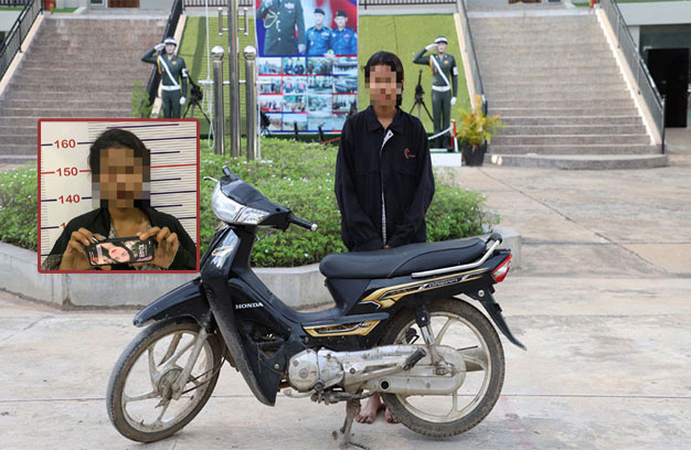 ខេត្តបន្ទាយមានជ័យ ៖ សង្សារវ័យក្មេង ១គូ ជិះម៉ូតូដឹកគ្នាតាមផ្លូវ ឃើញនារី ២នាក់ ទុកទូរស័ព្ទក្នុងឃ្លុបម៉ូតូ ក៏បបួលគ្នាឆក់យកទូរស័ព្ទបានសម្រេច រួចព្យាយាមជិះគេចខ្លួន តែត្រូវជនរងគ្រោះជិះម៉ូតូប្រដេញតាមពី ក្រោយជាប់ ស្រាប់តែក្រោយមកម៉ូតូជនសង្ស័យរលត់ ហើយភ្លាមនោះ ប្រុសស្ទុះរត់គេចខ្លួនបាត់ បន្សល់ ទុកស្រីស្នេហ៍ ត្រូវកម្លាំងអាវុធហត្ថក្របួចជាប់ នាំយកទៅចាត់ការតាមច្បាប់។
